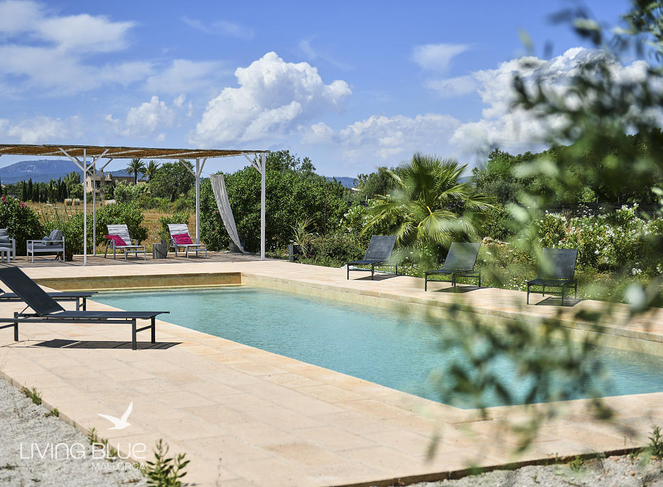 Die Villen auf Son Llado erreichen Sie über eine private Straße von ungefähr 1,5 km Länge. Von dort aus gelangen Sie auf die ca. 150 Meter lange, mit Rebstöcken gesäumten Zufahrt, der ca. 760 m² großen Villa Llevant. Ihr Weinbau hat einen Ertrag von gut 1.000 Flaschen im Jahr und trägt Ihren Namen oder den Ihres Anwesens.